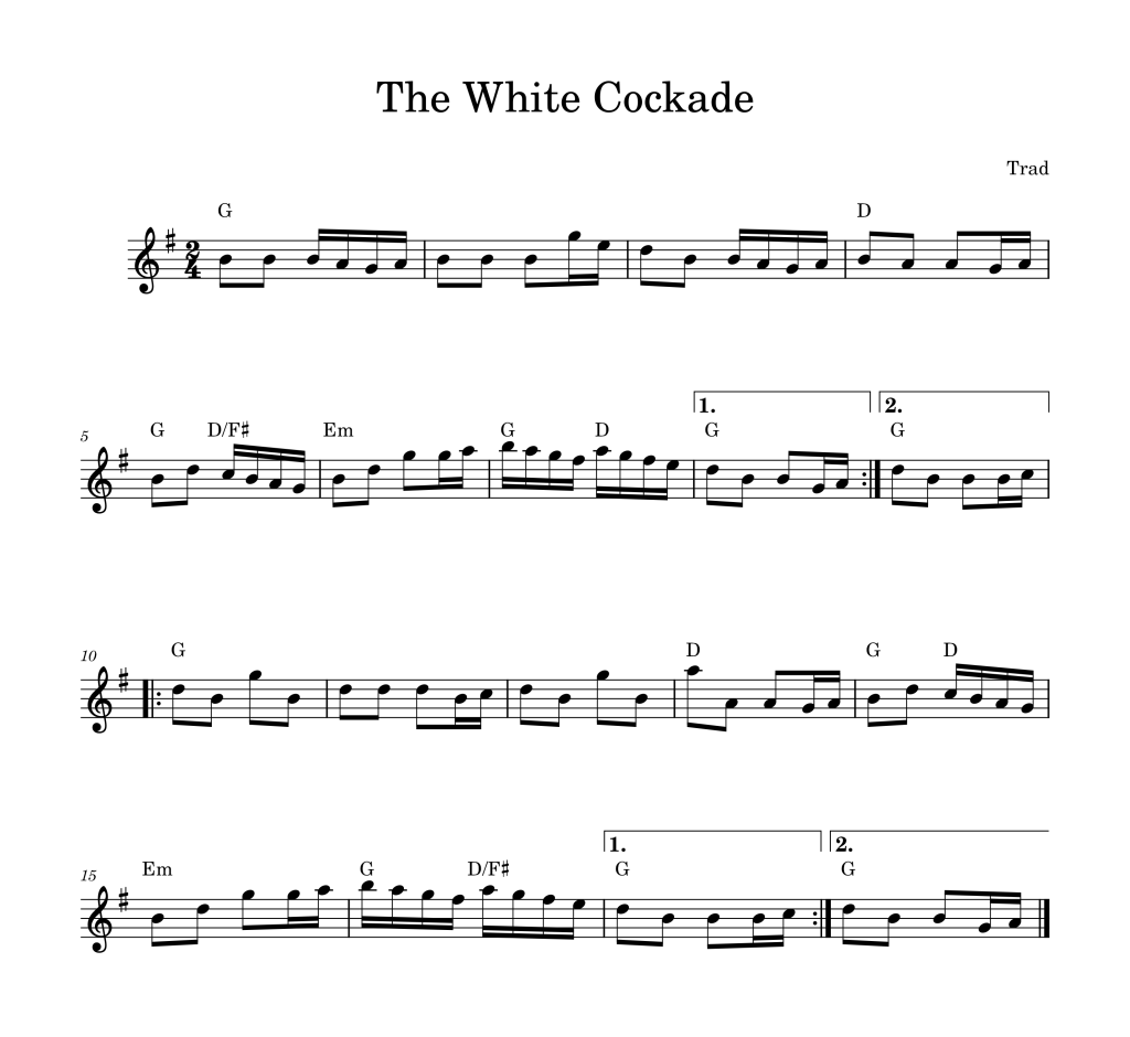 Belated Happy Burns Night! Here is a tune from Scotland called the White Cockade. It doesn’t follow the predictable pattern of some of the tunes we learned, so we sang through the A part (verse) using the Robbie Burns poem The Jolly Beggar’s John Highwayman: