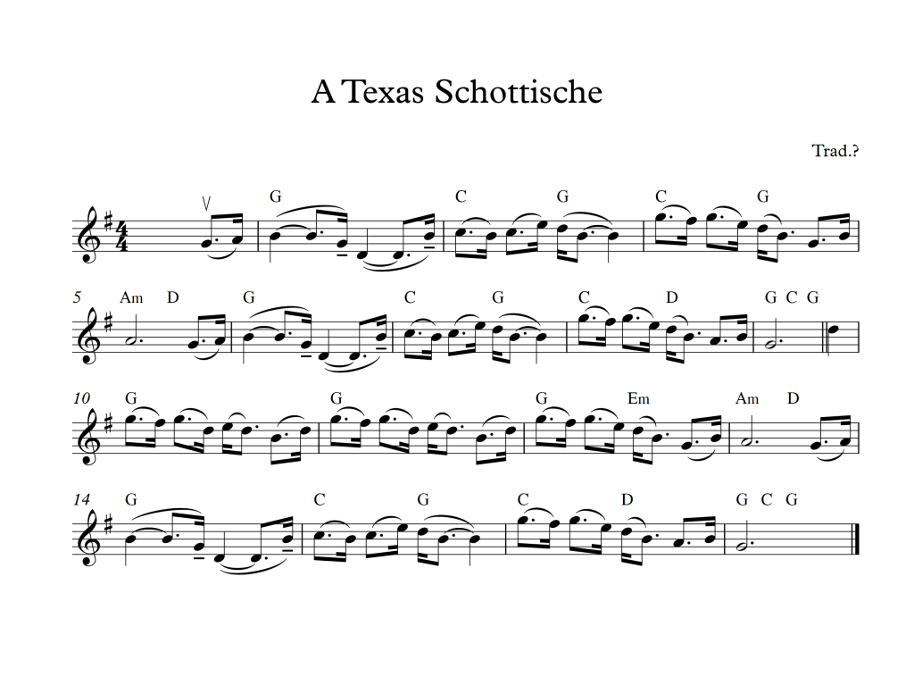 Here we have one of my favourite schottisches, which I know as Texas Schottische – it’s not the more famous The Texas Schottische, which is a quite different tune, so I have decided to tweak the title to A Texas Schottische to avoid confusion. A Schottische is a kind of slow polka originating in Bohemia and becoming popular in the Victorian era.