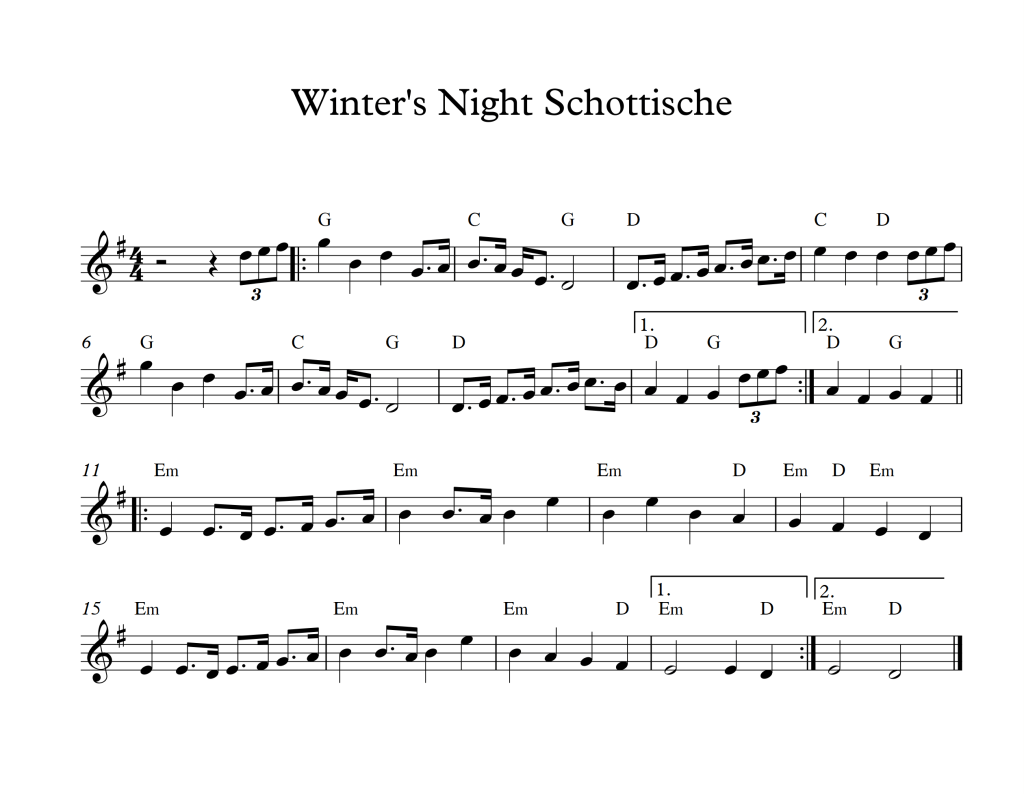 Here is a tune that goes by many titles: Rainbow Schottische, Stephen Baldwin’s Schottische and Midnight Schottische. It appears in Kerr’s Merry Melodies book of 1870 and appears to have remained popular ever since in England, Scotland, Ireland and North America.