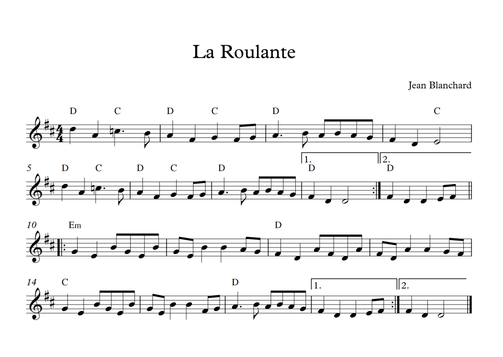Here is Monday 29th November’s tune, La Roulante, by French musician Jean Blanchard. It’s in mixolydian mode, so a major mode with a flattened seventh, in this case D major with C naturals, and has a lovely syncopated feel in the B music. We tried adding turns in places where the melody moves by step or in skips.