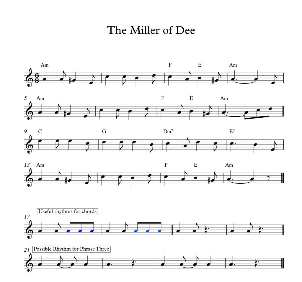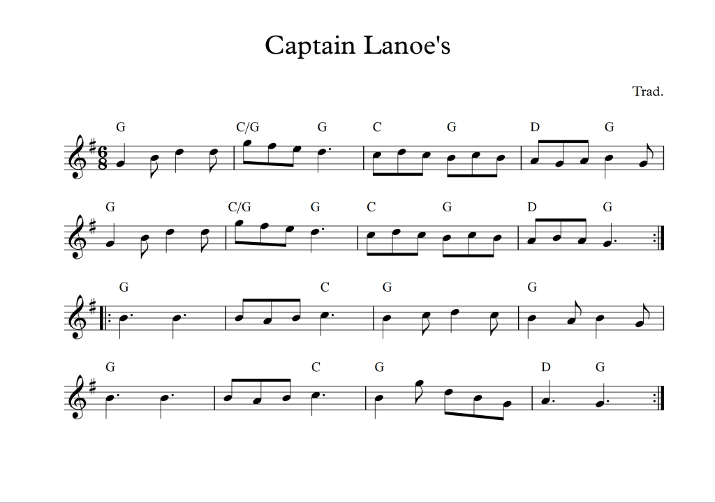 Here is our first official tune of the term, Captain Lanoe’s, aka Captain Lanoe’s Quickstep, Marionets (sic) or Marionets Cotillion. This is an English country dance tune from the late 1700s.